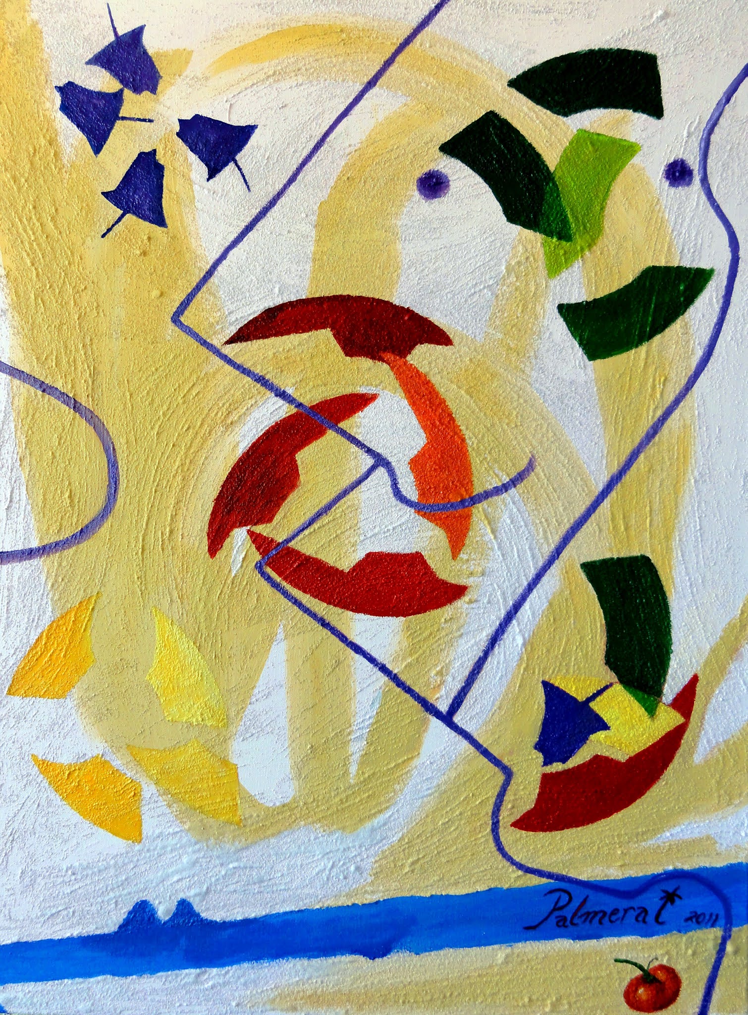 ("Evasion de capitales". Seres geométrico inteligentes) 120 X 100 cm, técnica mixta-Palmeral)